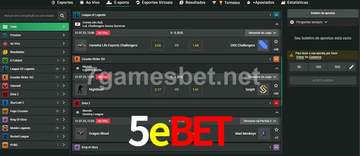 O 5ebet oferece uma grande seleção de opções de apostas em e-sports com probabilidades competitivas